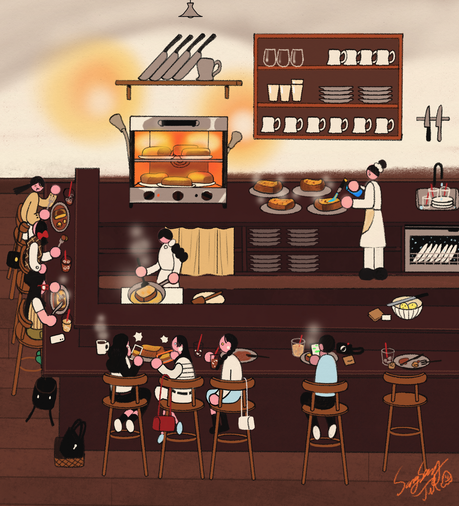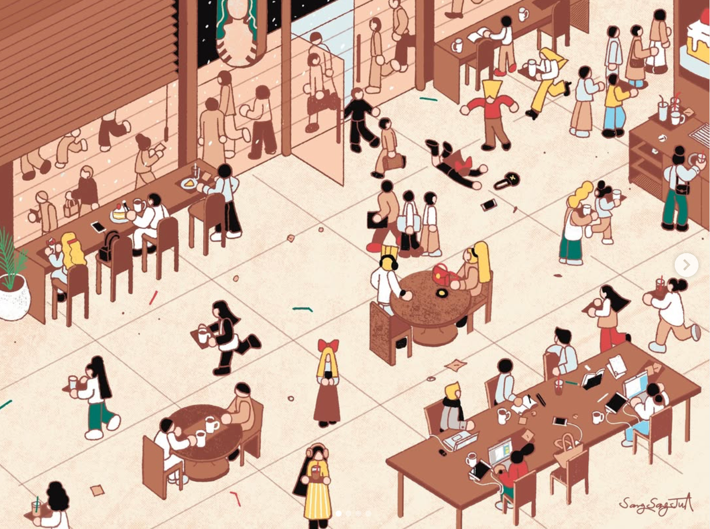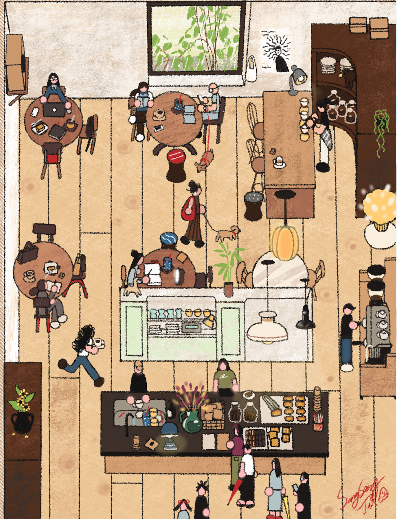 a bustling cafe story