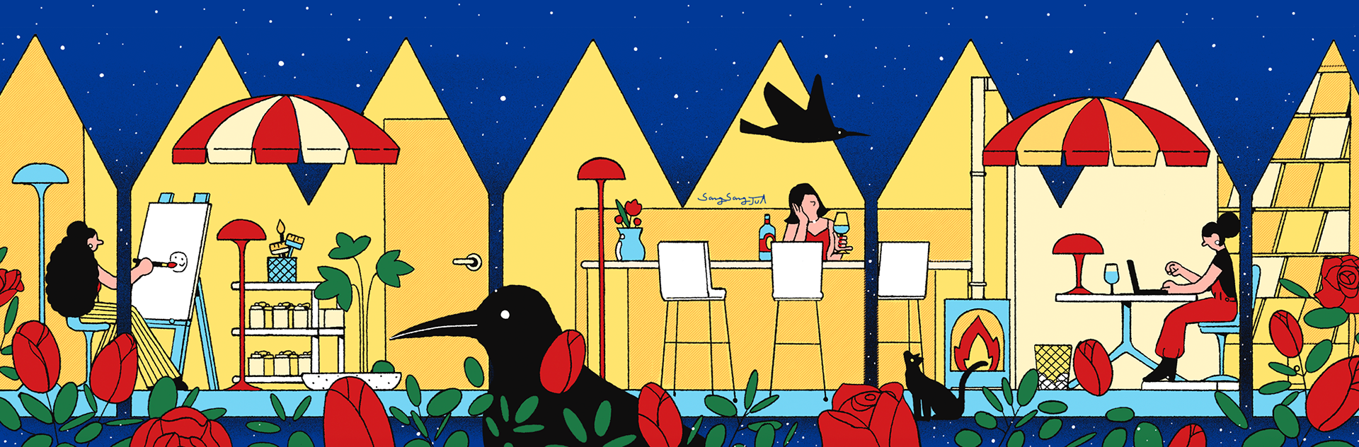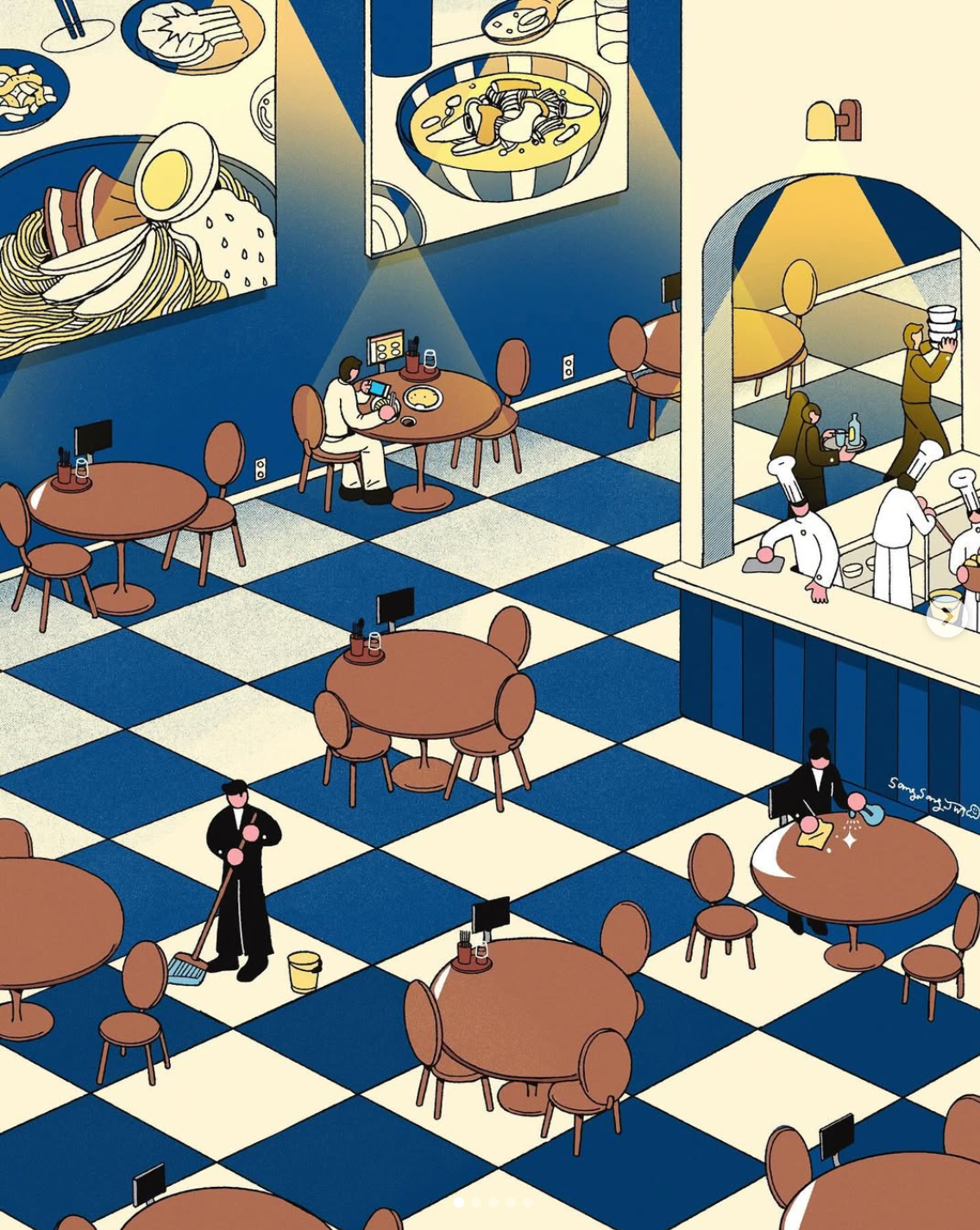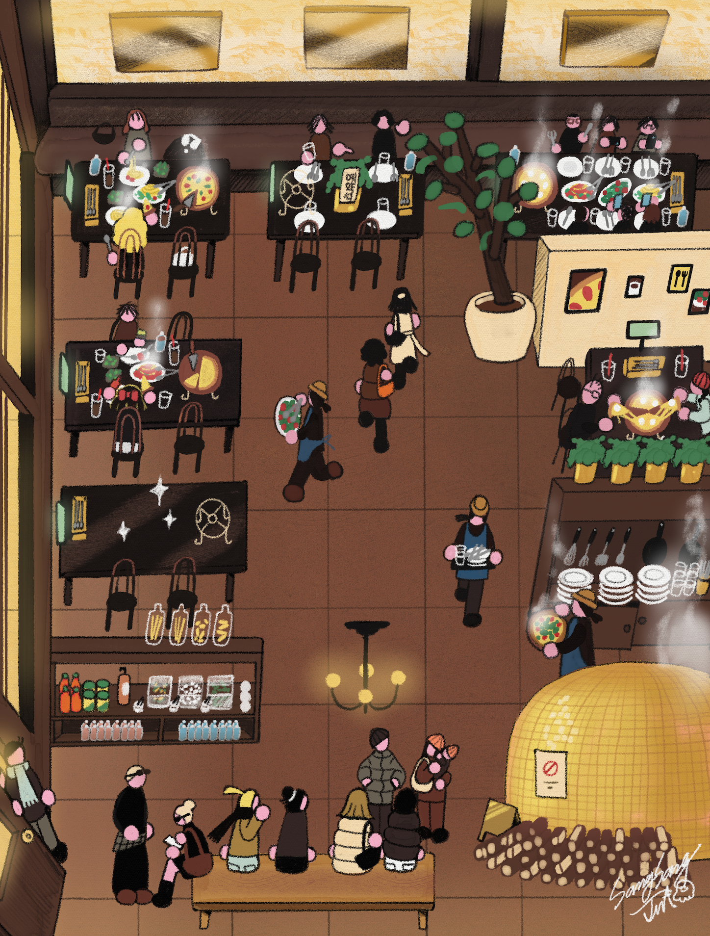 a bustling cafe story