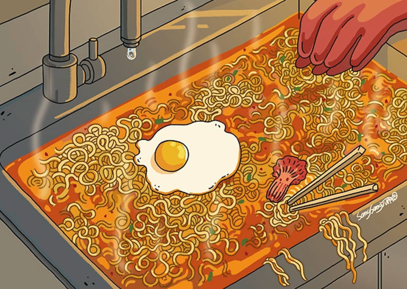 열나는 교수님 머리 위에서 라면 끓이기