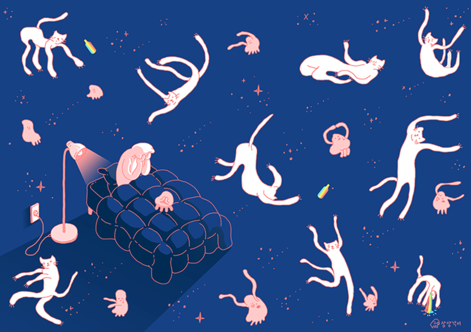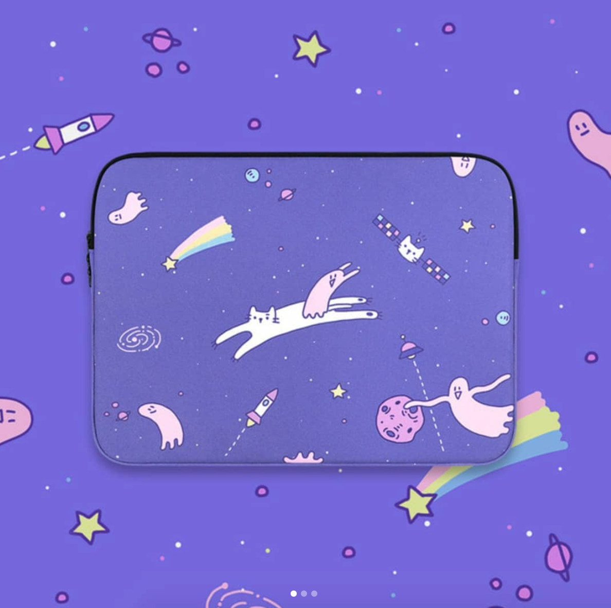 우주 고냥이와 달파리 노트북 파우치 앞면