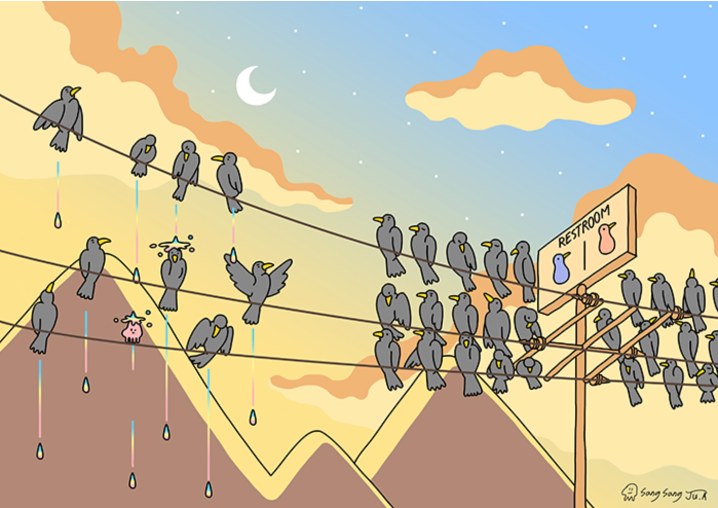 " 이봐 화장실을 쓰려면 줄을 서 "